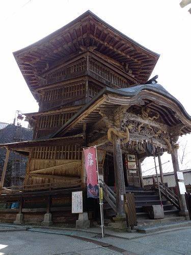 Cette pagode hexagonale en bois de trois étages est surnommée Sazae-dō en raison de sa structure en double hélice, comme les coquilles de turbo (sazae). Vous pourrez pénétrer dans la structure. L'escalier étant à sens unique, ceux qui montent et ceux qui descendent ne se croisent jamais. Cette pagode faisait partie d'un pèlerinage de 33 statues de Kannon, alternatif au pèlerinage Saigoku Kannon, d'où les marques laissées çà et là par des pèlerins. Elle fait partie d'un complexe de temples au pied du mont Iimori-san. Le Uga-shin-dō, à proximité, renferme 19 statues dédiées au Byakkotai (Armée des Tigres Blancs), de jeunes samurai du clan Aizu, âgés de 7 à 16 ans, qui se suicidèrent en masse au mont Iimori-san après avoir échoué à défendre le château Tsuruga-jō contre l'armée du nouveau gouvernement Meiji, pendant la guerre de Boshin, en 1868.